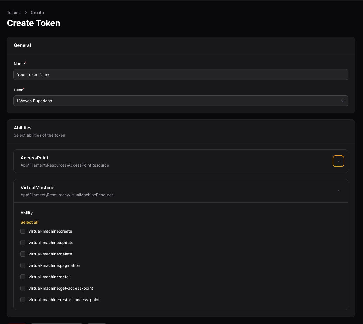 By default, Token resource only show on super_admin